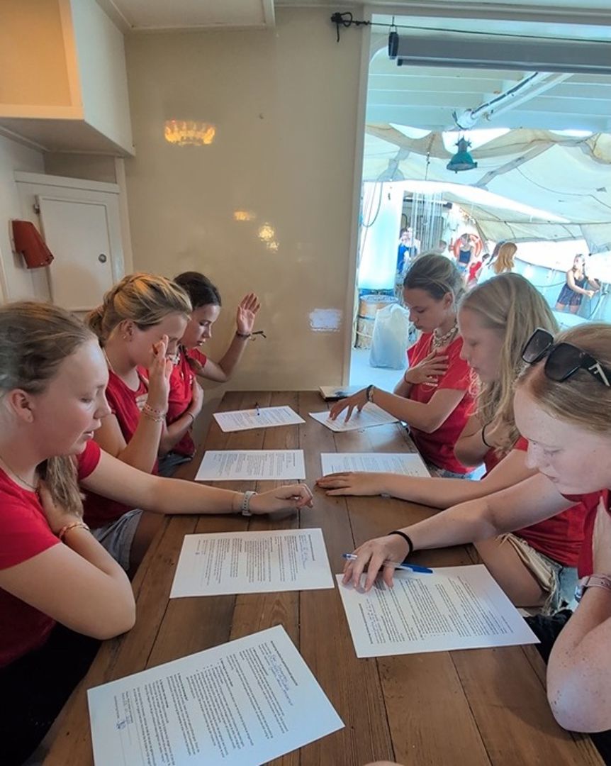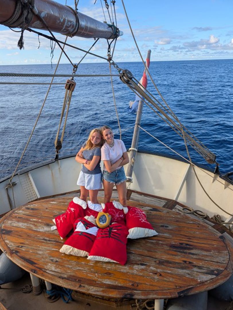 31 december: Dit was een hele bijzondere dag, iedereen mocht namelijk na 2,5 week zijn of haar telefoon! Voor de meeste is een confrontatie met het thuisfront denk aan Sail mail en nu dus bellen, altijd even een momentje dat ze zich terugtrekken. Dus even op bed liggen met de sail mail of bij de breezeways aan de zijkant van het schip. We kregen onze telefoons na happy hour dus rond kwart voor 4 ongeveer (happy hour is nog nooit zo snel gedaan). Iedereen kreeg een lesje hoe je moet connecten met het internet en toen was het tijd om te bellen!!!! De meeste hebben wel stiekem een traantje gelaten of een hele hoop. Maar ik denk dat ik nu voor iedereen spreek als ik dit zeg, het was heel bijzonder om de mensen die je normaal elke dag ziet en spreekt nu al zolang niet te zien en te spreken, wel 2,5 week. Iedereen vond het super leuk en fijn om hun ouders en vrienden even te bellen en te appen. Om 19.00 uur moesten ze weer worden ingeleverd. Dat was ook even een emotioneel moment, maar daarna kon het oudjaarsdag feestje beginnen! Ik had persoonlijk anchor watch met mijn groepje van half 7 tot 10 dus onze telefoons werden al ietsjes eerder ingenomen, want er moesten zeilen ge-braced en ge-eased worden. Ook heel belangrijk natuurlijk want we willen niet afdrijven op de oceaan als we proberen stil te liggen. De wacht verliep goed en we hebben best wel veel gedaan. Heel veel mensen beginnen al echte spierballen te krijgen. We kunnen hier al een zeil van 100 kilo met z’n vieren omhoog trekken! We zijn onszelf echt elke dag aan het tallen (#tallyourself). Rond 9 uur was het voor de mensen zonder wacht tijd voor bingo! We hadden verschillende prijzen zoals chips en nog meer lekkers. En als je een bingokaart als eerste vol had mag je een happy hour skippen. Dat zijn hele goede prijzen hier op Masterskip. Na de leuke bingo hadden we wat vrije tijd, sommige keken films andere gingen in hun dagboek schrijven of spelletjes spelen. Bijna iedereen was aan het strijden om wakker te blijven, maar toen gingen we rond half 12 gingen we karaoke doen. Super gezellig, er is heel mooi gezongen door iedereen. Het aftellen was ook super leuk, we stonden in een kringetje en iedereen gaf knuffels aan elkaar om een fijn 2026 te wensen. Heel gezellig. Rond 10 over 12 gingen veel al naar bed. Maar er is ook tot diep in de nacht een feestje geweest met karaoke natuurlijk.